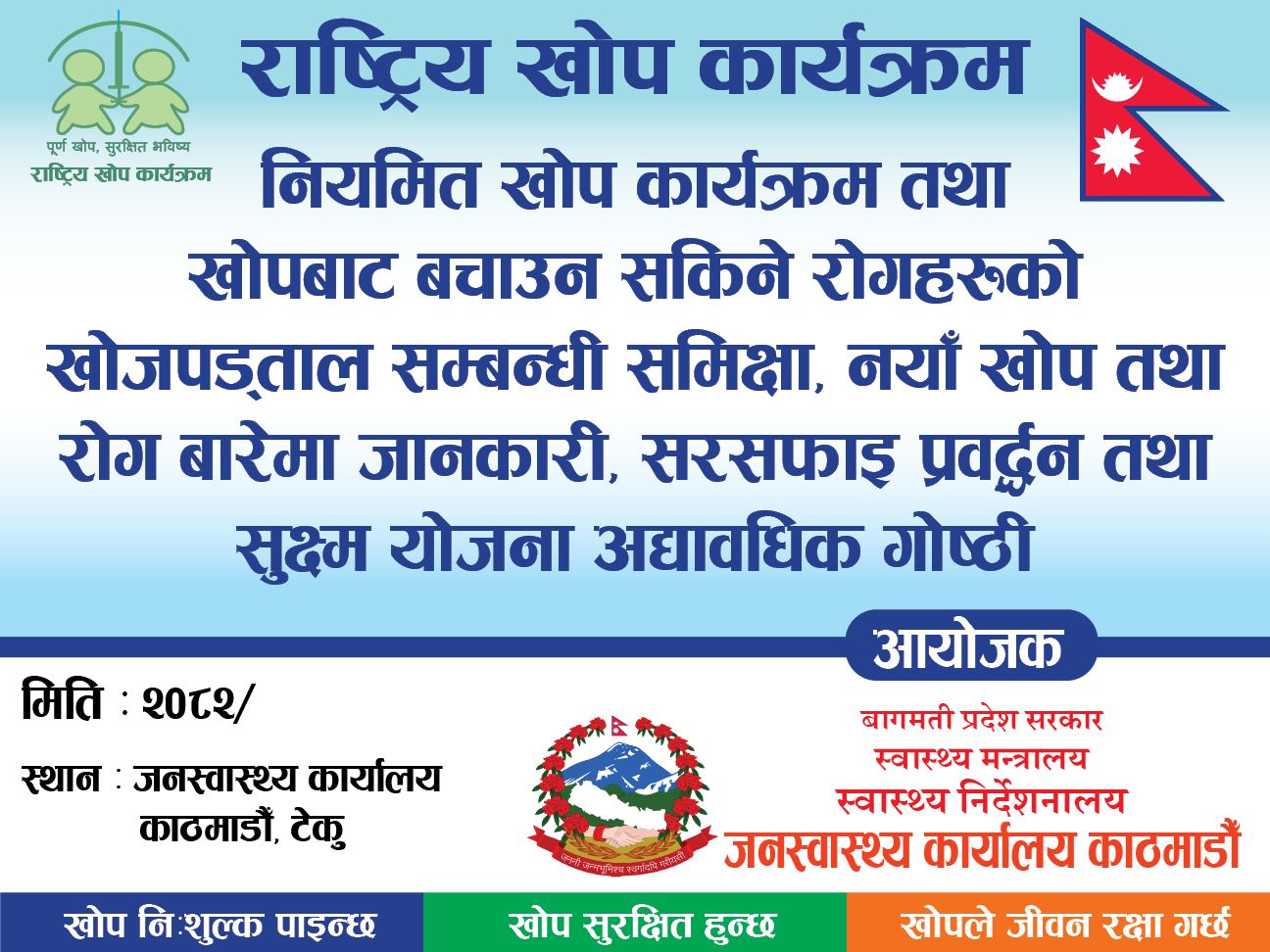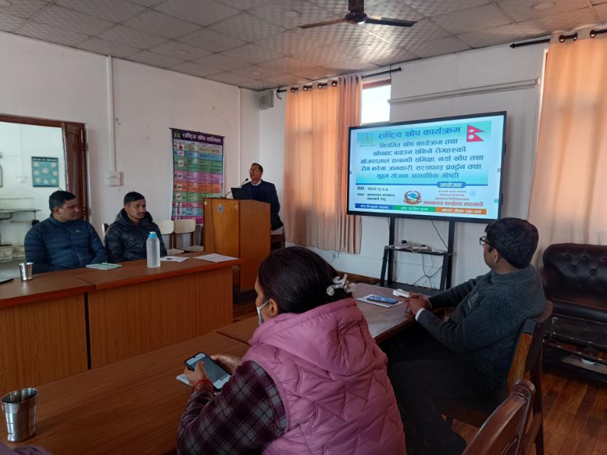 नियमित खोप कार्यक्रम तथा खोपबाट बचाउन सकिने रोगहरुको खोजपड्ताल सम्बन्धी समिक्षा, नयाँ खोप तथा रोग बारेमा जानकारी, सरसफाई प्रवर्धन तथा सुक्ष्म योजना अद्यावधिक गोष्ठी